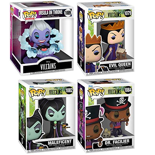 Funko POP! Disney: Villains Collectors Set – 4 Figure Set: Ursula on Throne (Deluxe), Doctor Facilier, Maleficent, & Evil Queen Grimhilde